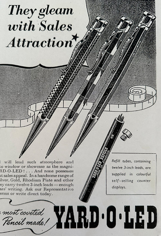 In the early 20th Century, another gold and silversmith was established in London by Ludwig Brenner, who came from Pforzheim, Germany, bringing the secrets of the Black Forest artisans. It was in London that he would perfect the instrument that would secure his fame and fortune: a self propelling pencil holding twelve three-inch leads, the iconic "Yard O Led". Brenner went into business with one Frank Tuffnel, whose father had worked with Sampson Mordan, founding the official Yard O Led company in 1934.