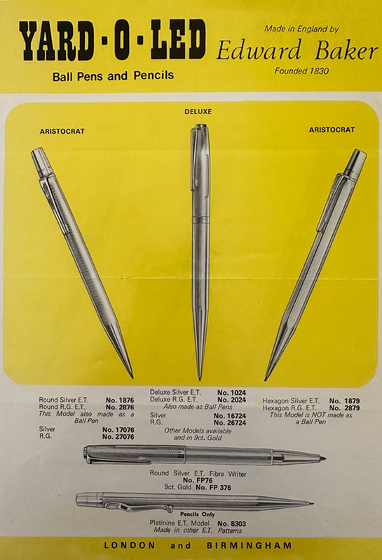 Today Yard O Led is one of the world's leading manufacturers of fine pens and pencils, as well as one of the most historic craft workshops in Britain. Our story begins over 200 years ago with the founding of a goldsmith in London by Sampson Mordan, an associate of the groundbreaking scientist Michael Faraday. Mordan would shortly go on to patent the world's first propelling pencil in 1822, which he dubbed "ever-pointed". This patent would later be acquired by Edward Baker & Company of Birmingham.